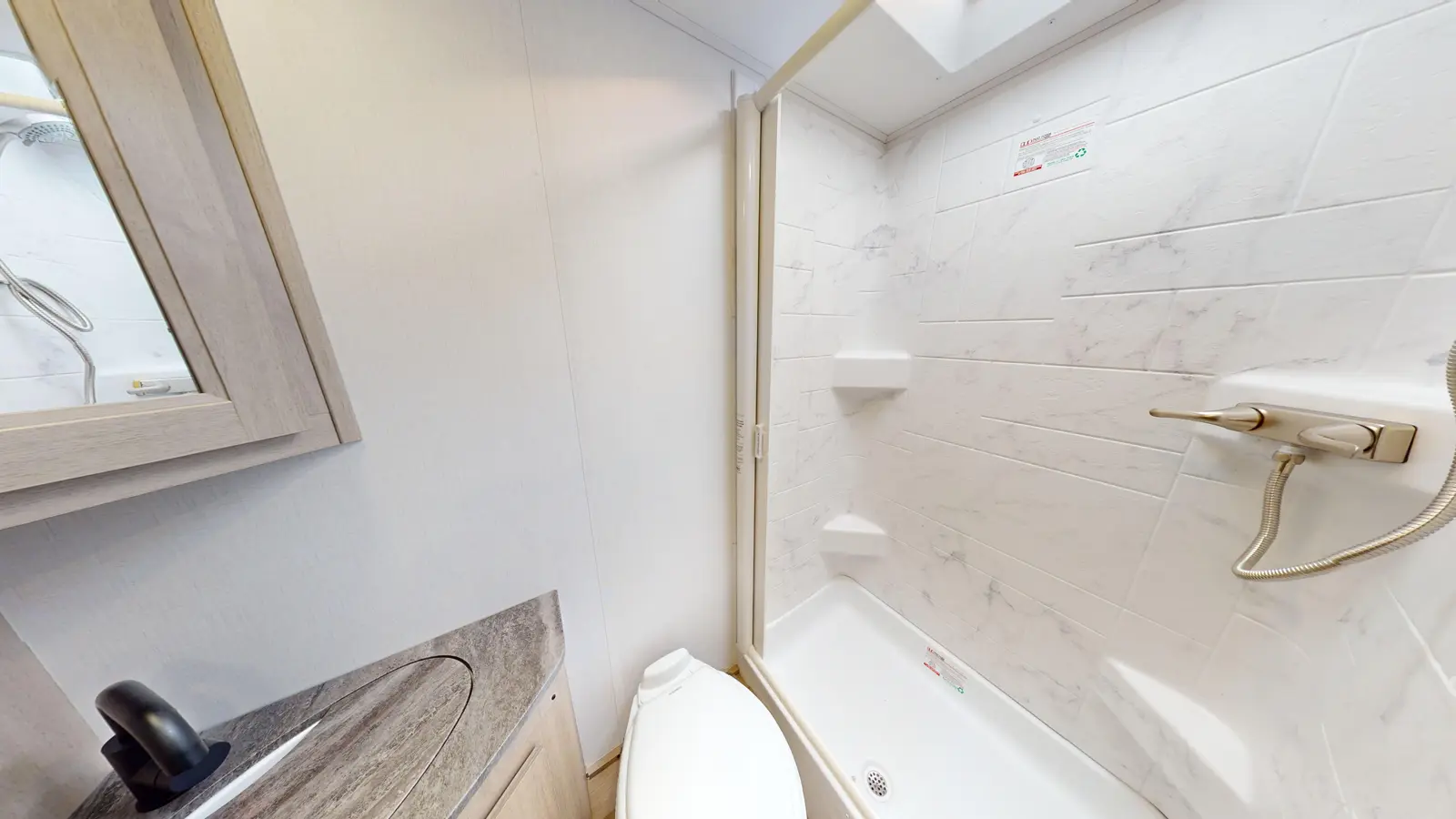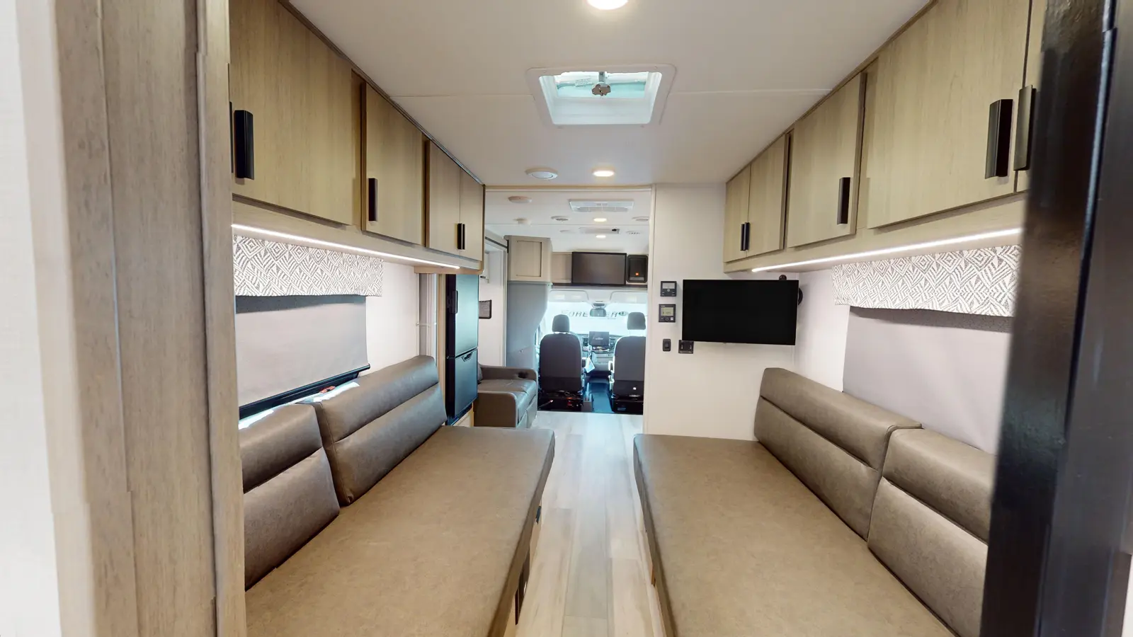 The Forester TS2371 is the perfect couple's coach with twin beds, a rear full bathroom with a shower, and a wardrobe for your things. A love seat with table is perfect for dining, with a fully equipped kitchen that includes a stovetop, convection microwave, flip-up countertop for extra space, and a 10.7 CU FT 12 V residential-style stainless steel refrigerator. The rear bath includes a 24" x 36" skylight shower, commode, vanity sink with extended countertop, and medicine cabinet.
