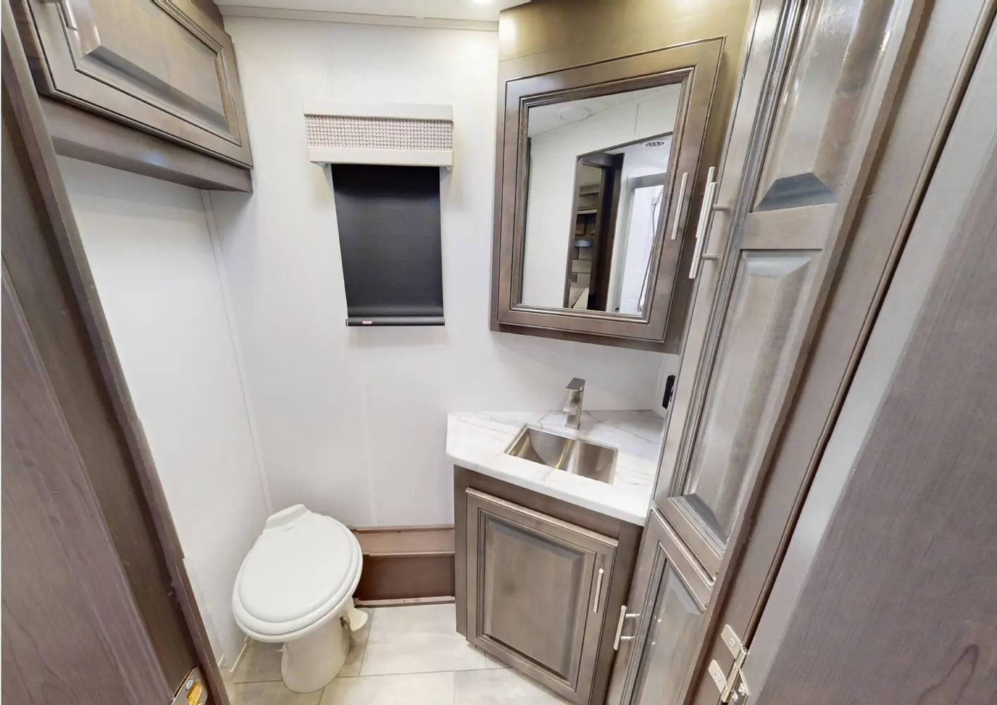 Choose from two thoughtfully designed floorplans, each paired with two elegant décor options, allowing you to tailor your motorhome to your unique style. Key standard features include: Automatic hydraulic leveling jacks for effortless setup; Color side and rear cameras for enhanced visibility and safety; LED TVs in the bedroom and main living area for entertainment on the road; Custom countertops and a premium Sony dash entertainment system with AM/FM, Bluetooth, and USB connectivity.
