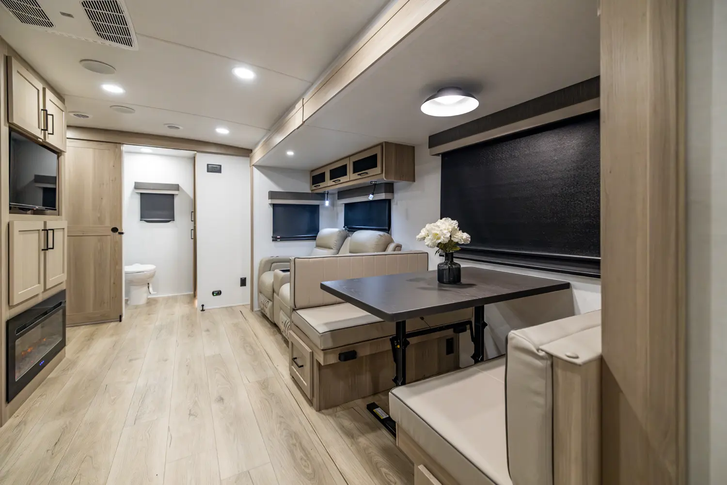 • Platinum Package: Auto Leveling, Frameless Windows, 1800W Inverter, MORryde Strut Assist Entry Step, Dual 30 LP Tanks